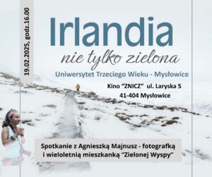 Przez kilka lat mieszkałam w Irlandii, do której zawsze chętnie wracam (gdy tylko mam okazję) i o której chętnie opowiadam podczas prelekcji lub wernisażu mojej wystawy: Irlandia nie tylko zielona.